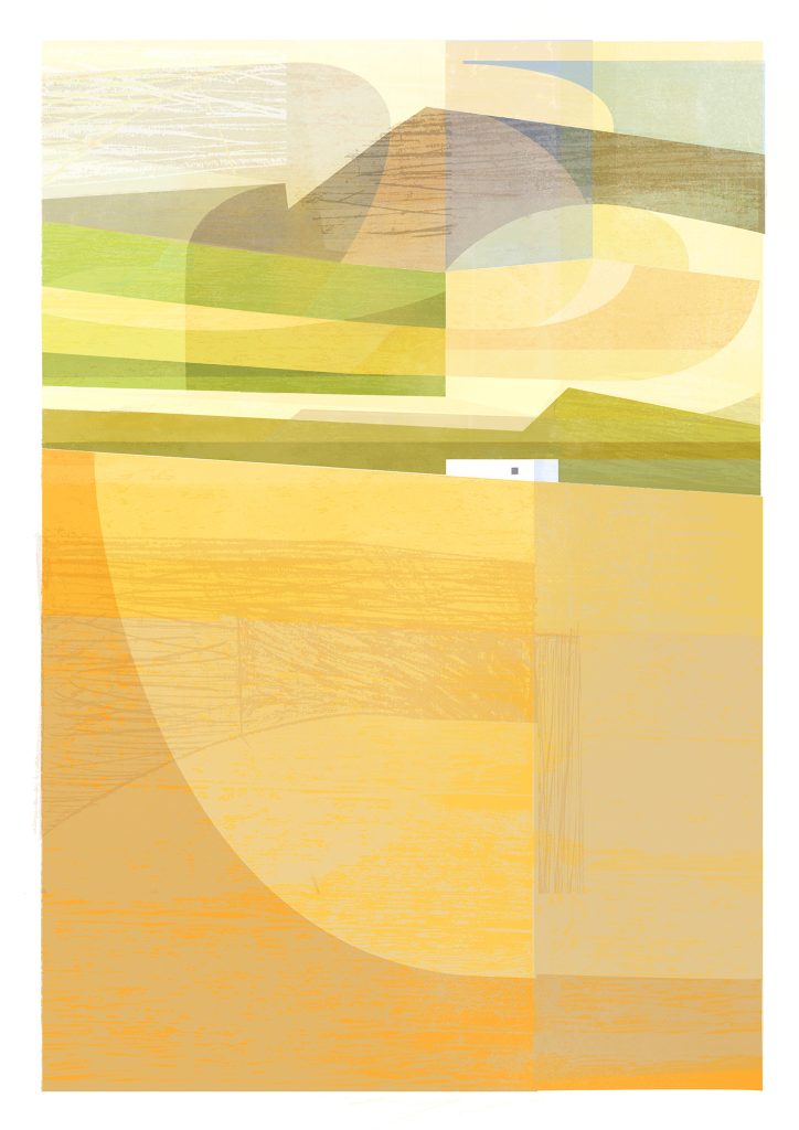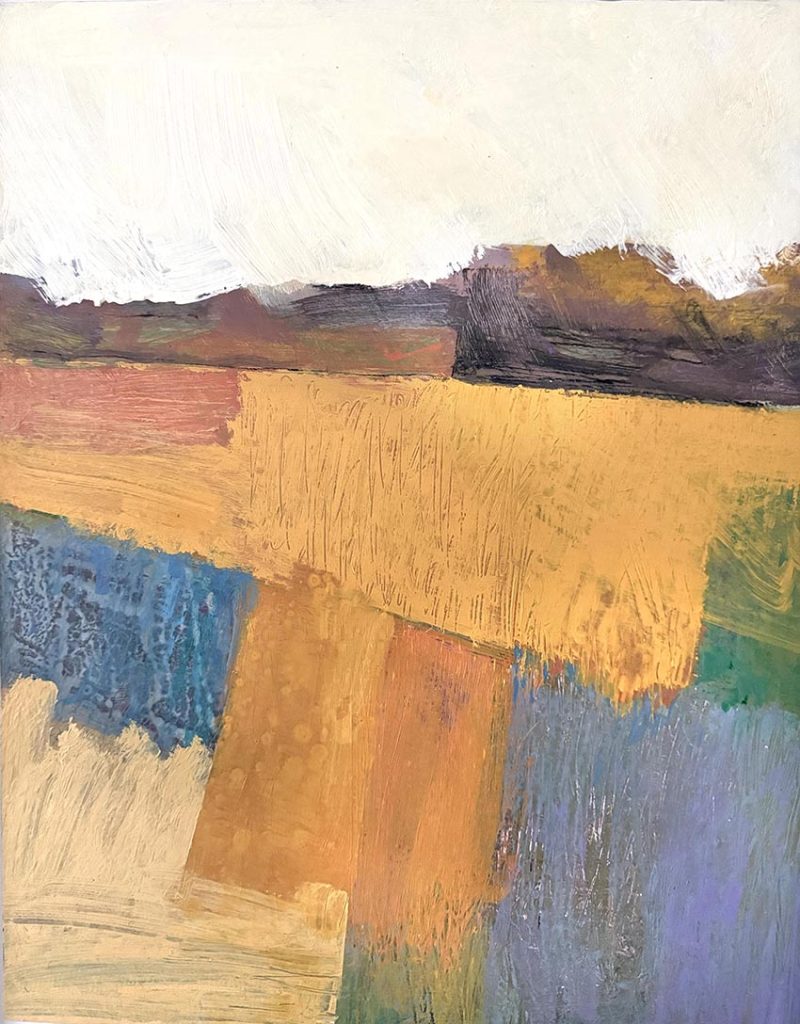 La obra de Adrian se centra en interpretaciones de los paisajes de Somerset y Andalucía a través de la pintura y el grabado. Explora el color, la forma y la textura mediante enfoques tanto abstractos como más figurativos. Su práctica en el grabado combina las formas tradicionales de este arte —con sus texturas e imperfecciones— con el control y la sofisticación de las técnicas digitales. Estos grabados y pinturas acrílicas representan una nueva etapa en su trayectoria artística, capturando la sensación de estar presente en un lugar concreto y reflejando el punto en el que se encuentra ahora en su camino creativo.