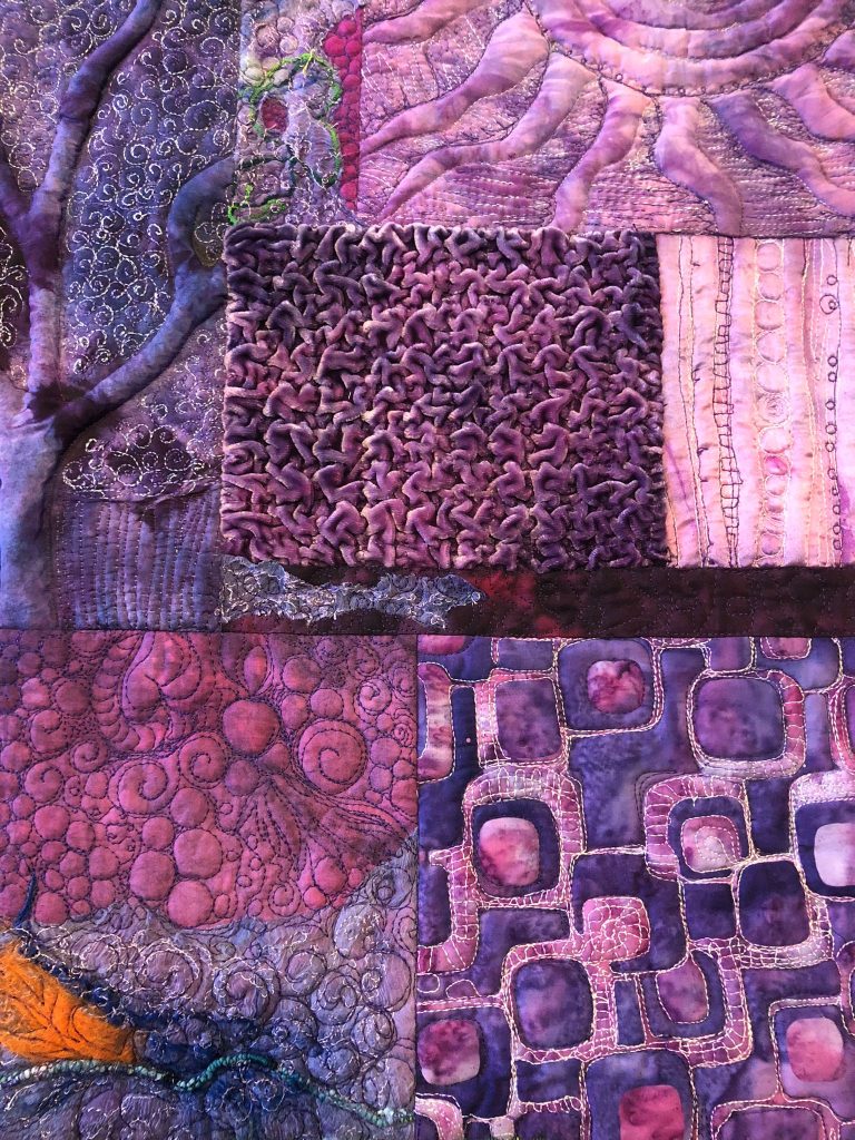 International Profile: Selected to represent Spain at the Pacific International Quilt Festival (PIQF) in California (2021) with her works Serenity and El sabor del tiempo.